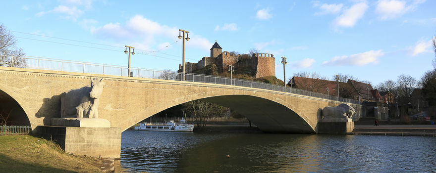 Stadthalle mit Albinmüllerturm und Pferdetor